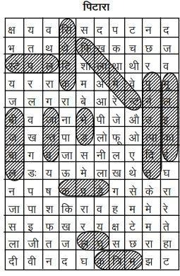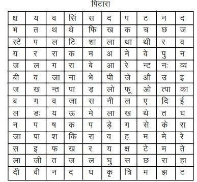 1. नीचे दिये गये वाक्यों के रिक्त स्थान वाले शब्द इस पिटारे में दिये गये हैं। शब्द नीचे की ओर, सामने व तिरछे लिखे हुये हैं। इन शब्दों को ढूंढिये और निशान लगाकर वाक्यों को पूरा कीजिये।