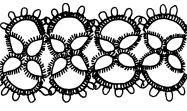 (vi) लेस (Lace): सूतों को आड़ा तिरछा रखकर जटिल डिजाइन बनाए जाते हैं। खुली जालीदार संरचना देने के लिए सूतों को फंदे डालकर या गाँठ लगाकर अंतर्गर्चित किया जाता है। लेस का महत्वपूर्ण प्रयोग पोशाकों की सुंदरता बढ़ाने के लिए किया जाता है।
