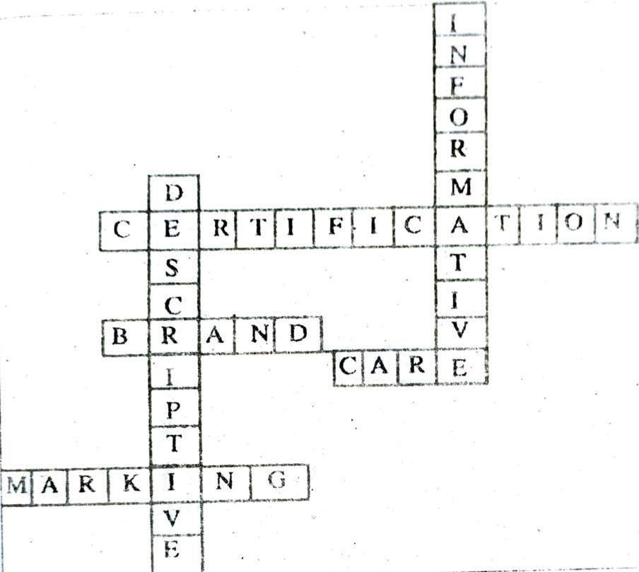 Given below are the clues for different types of labels.Use these clues to fill in the cross word: