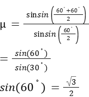 Angle of minimum deviation, Sm = A = 60°