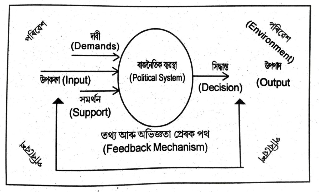 ৩৭৷ ডেভিড ইষ্টনৰ ব্যৱস্থাপক তত্ত্বৰ ধাৰণা সম্পর্কে বহলাই আলোচনা কৰা। (Discuss in details about the David Easton’s views on System Theory.)