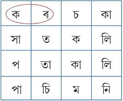 ৬। তলত দিয়া আখৰ-জালৰ পৰা শব্দ গঠন কৰোঁ আহা।