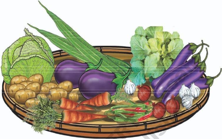 উত্তৰঃ বেঙেনা, জিকা, আলু, গাজৰ, নহৰু, পিয়াজ, বান্দাকবি, জলকীয়া, শাক।