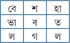 ৪। তলৰ আখৰ-জালৰ পৰা আখৰ বিচাৰি শব্দ গঠন কৰি পঢ়ো আৰু লিখোঁ আহা।