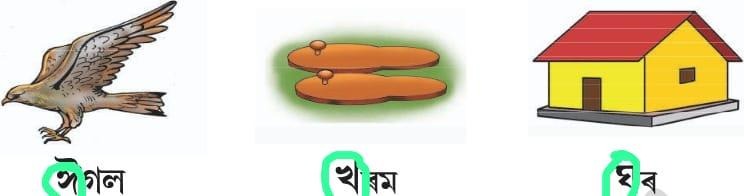 ৩। ছবিৰ নামৰ প্ৰথম আখৰবোৰত ঘেৰ দি কওঁ আহা।